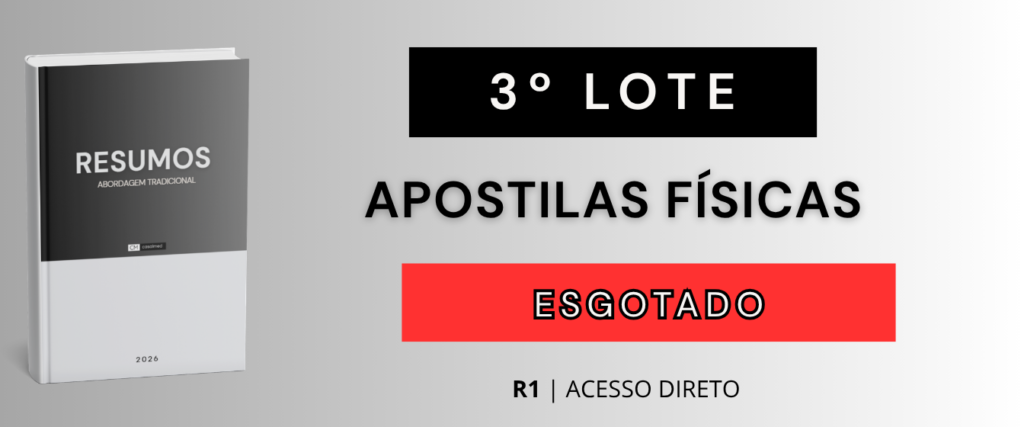 As apostilas da pré-venda serão enviadas por uma gráfica parceira de São Paulo (SP), via PAC.